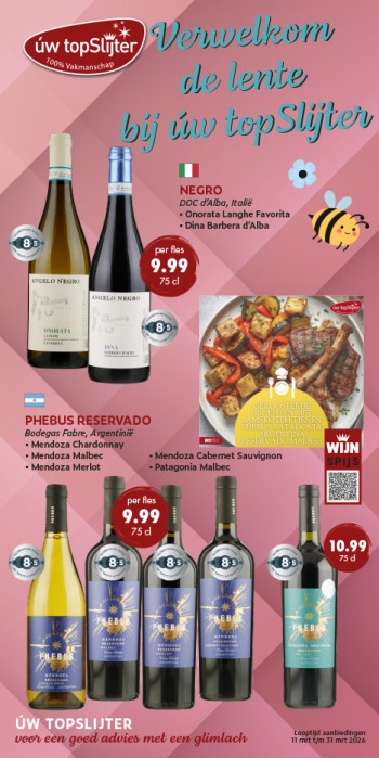 We krijgen weer langere dagen, mooier weer, vrolijke mensen en eerder wine o'clock! 28 op 29 maart gaan we weer een uurtje vooruit. En om de lente extra te vieren hebben wij weer heerlijke aanbiedingen!